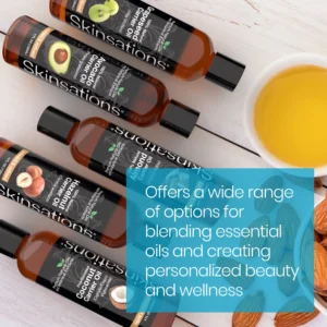 Embrace the art of essential oil mixing and custom fragrance blending with Skinsations Natural Beauty Oil Set. Let the cold-pressed Sweet Almond, Hazelnut Oil, Avocado Oil, Grape Seed Oil, and Coconut (MCT) oil elevate your creativity and nourish your body and skin. Whether you’re a professional seeking career oils or an individual on a quest for daily body care solutions, our set offers versatility and unparalleled quality. Order now and unlock a world of endless possibilities!